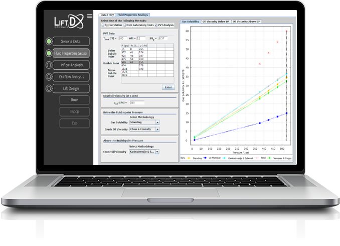 LIFTD is a computational application developed for diagnosis and optimization of oil producing wells. This app has three modules: Fluid Properties Setup; Inflow Analysis; Outflow Analysis. Considering that some artificial lift systems are very sensitive to viscosity, the fluid properties setup module was specially structured to what a designer can consider and carefully analyze this variable. In the inflow analysis module, it was considered to use simple methods to calculate the inflow performance relationship IPR curve. The outflow analysis module includes four methodologies: Duns and Ros; Hagedorn and Brown; homogeneous model; Fancher and Brown. Additional characteristics of this app are the possibility to estimate the natural separation efficiency (necessary to predict the percentage of free gas at any depth of interest), and the flow pattern. On the other hand, this app has a design module which can be used to design any type of artificial lift systems such as: ESPCP; ESP; Continuous Gas Lift; Hydraulic Pumps; etc.