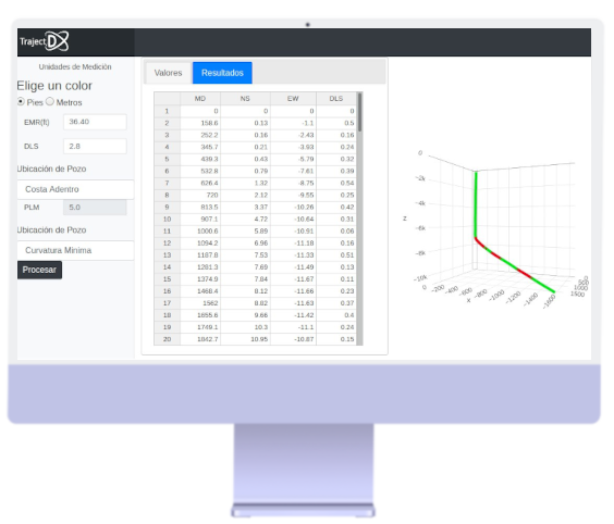 Sometimes, it is necessary to identify straight zones in very inclined wells for the settlement of production systems such as electrical submersible pumps. If well information referred to the azimuth is available, TRAYECTORYD allows the determination of the optimum depth of settlement of the pump based on the maximum degree of deviation allowed (Dog Leg Severity DLS). The results are displayed in a 3D graph, showing the best settlement zones of the artificial lift system.